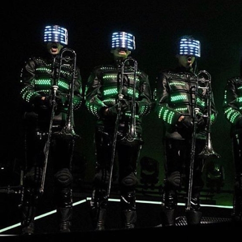 ETERESHOP has many famous clients. We recently worked with the British company Muse. They were preparing new stage costumes for their world tour Simulation. All costumes, by the way, are designed by well-known fashion stylist Cristina Acevedo. In tandem with them, we developed 25 LED glasses masks for the dancing troupe.