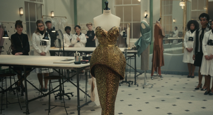 Hence the references to the work of the designer in the form of a dress, completely embroidered with butterfly dolls. Butterflies were a frequent symbol in McQueen’s collections. After the death of the designer, the creative director of Alexander McQueen Sarah Burton made the first collection from dresses embroidered with artificial butterflies. In the film, by the way, they are real.