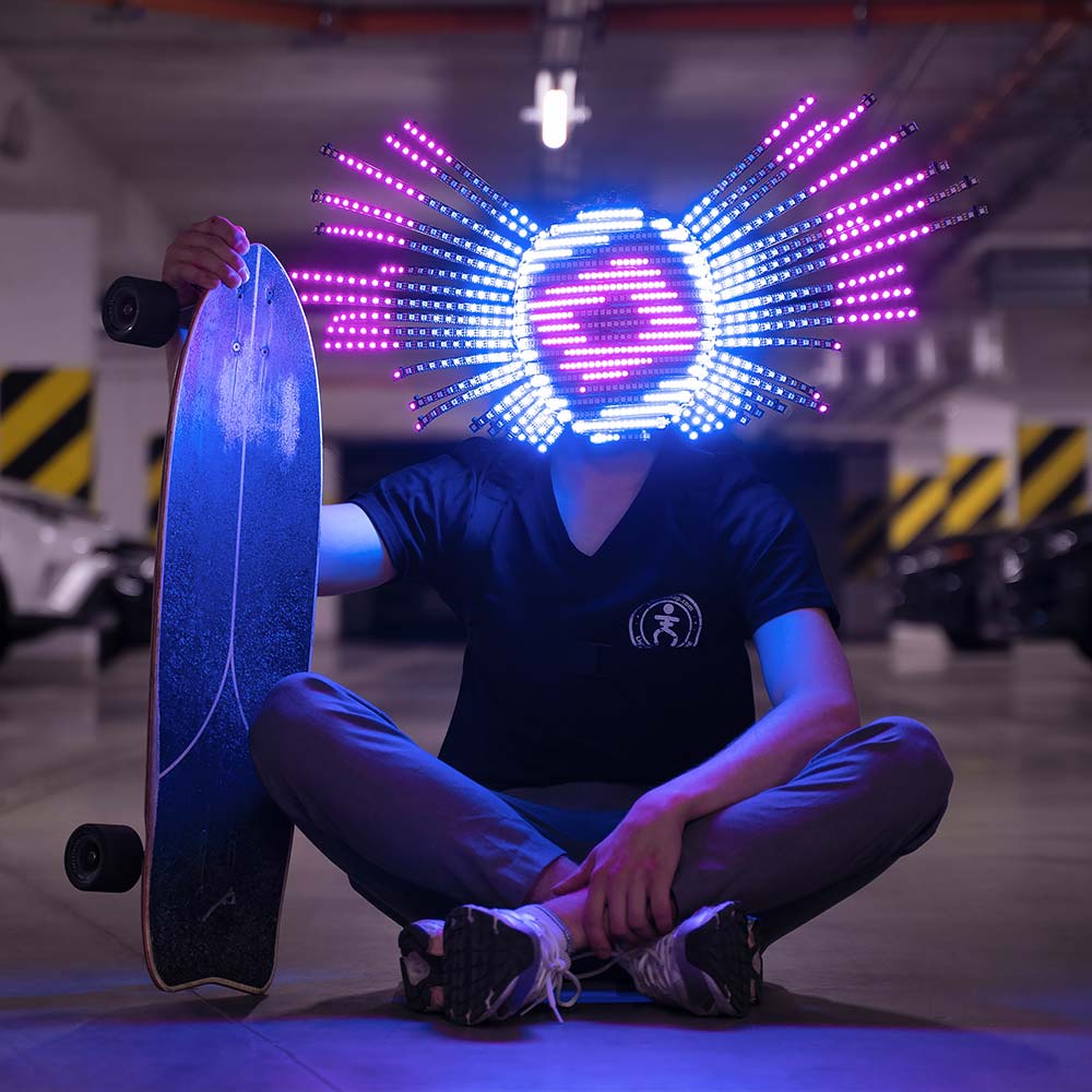 The face is often the focal point of a performance, and LED accessories provide an immediate, unforgettable effect. Our shop features a variety of innovative coverings, which allow performers to embody futuristic or mythical characters. For complete anonymity and dramatic effect, use one of our Light-Up FullFace Masks like a retro-looking LED TV Helmet or “Owl” Screen Mask.