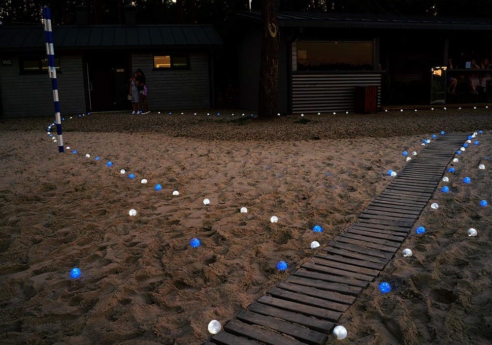 Another luminous element we used for the decoration of this party was even more fun and interactive. LED fairy balls were scattered across the riverbank and along the path to mark direction towards key locations of the party, including the bar stand.