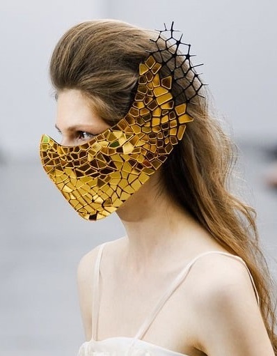 They variegate from mirror silver or gold ones to designed accessory on the face with spikes or rhinestones or cool designed face masks with feathers or other decorating elements.
