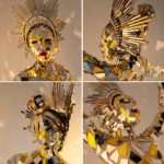 Gold and silver mirror ballerina costume with a shiny crown has been designed for a circus show, but will also look great at posh parties and receptions, holiday season entertainment shows at hotels, large shopping malls, casinos.