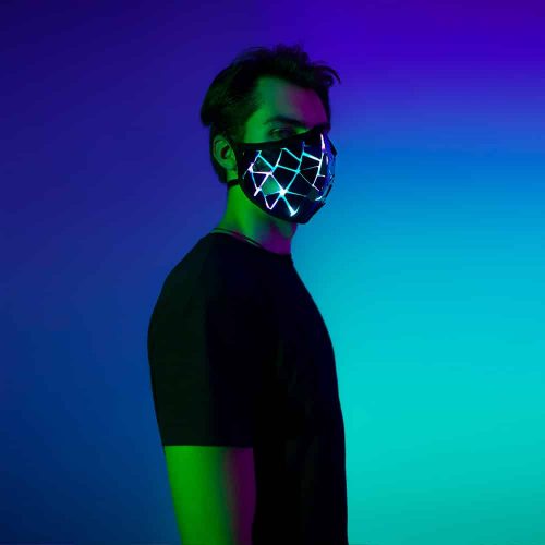 Black mirror Smart LED face mask with symmetrical mirror effect has been designed for musicians, artists, bloggers, models working with different genres and ready to shine every day just like on stage in post-lockdown times.