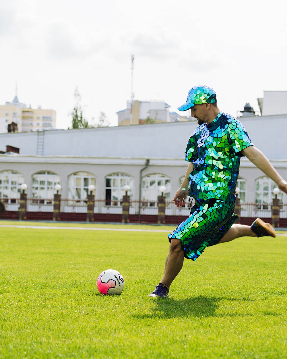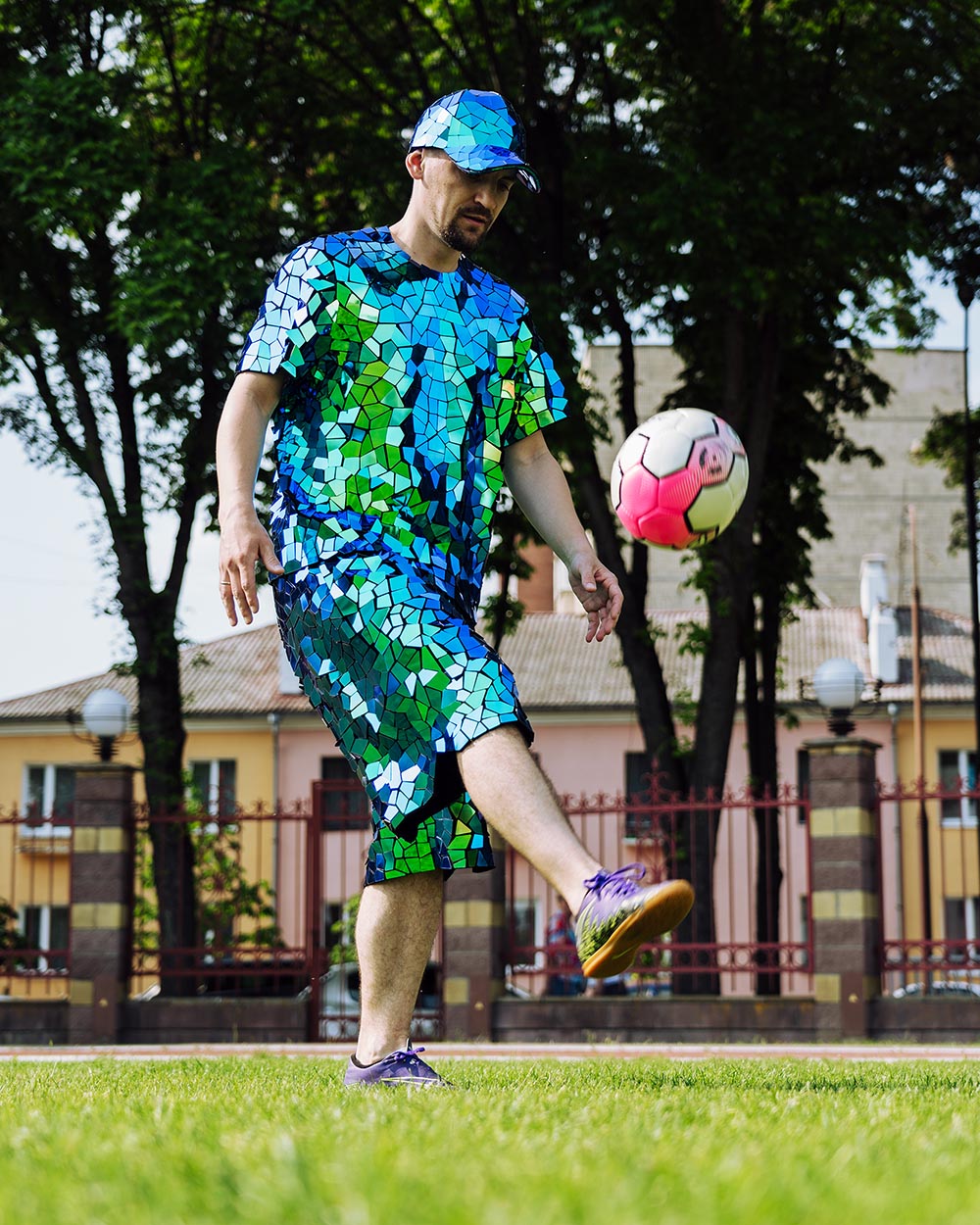 — Mirror football player costume can be personalized up to your needs: color, size, tiles form and pattern + you can add additional accessories.
