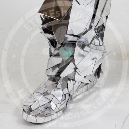 Broken mirror man costume are made of an acrylic mirror with mirrors of various shapes, which are assembled in a way that gives the impression of broken glass. This mirror looks like a real mirror and you can see your reflection in it, at the same time the mirror reflects well the lights of night and the sun’s rays, so you can use it at any daytime and any event – a meeting of guests, photo sessions, laser and light shows, dance competitions and etc. Mirror suits are safe, ergonomic, easy in use and repair.