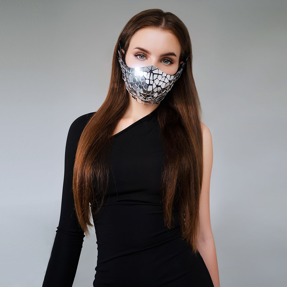 — Use the disco ball effect of a mirror mask to attract glances in any lightning conditions: with lasers and sophites on stage, in the sunlight in the open air, or in the artificial light of night clubs.
