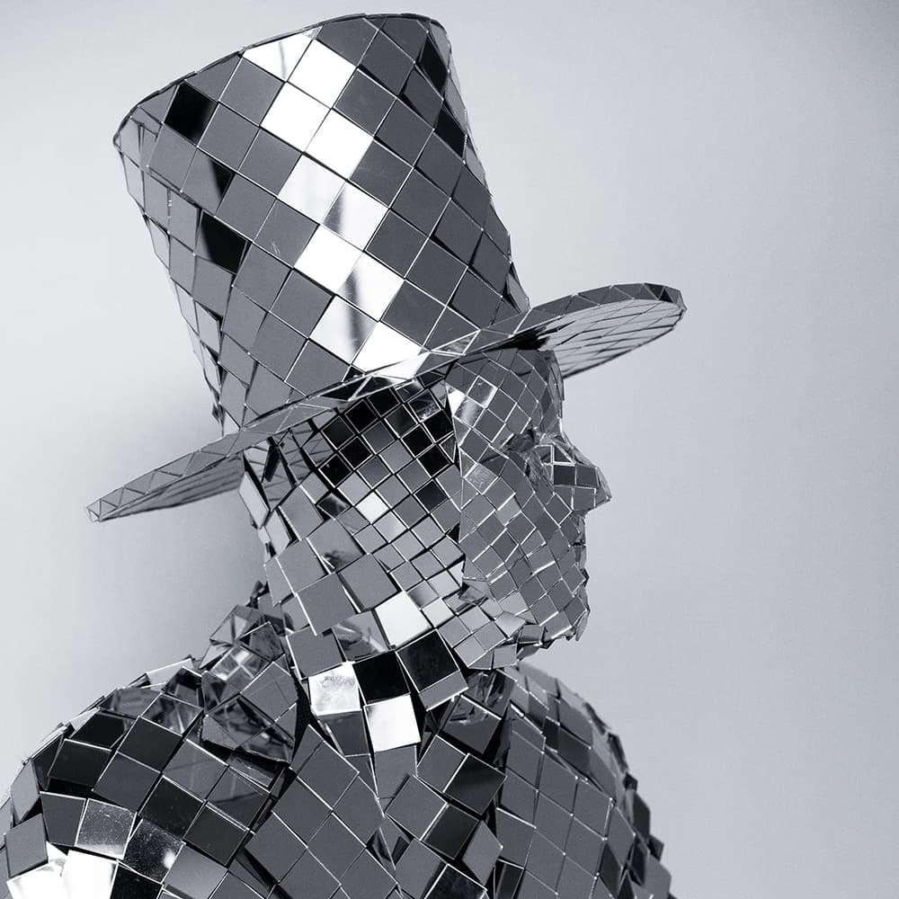 Are you looking for something more traditional but still eye-catching? Pick one of mirror hats we usually make for mirror man living statue costumes. We can easily make Guinness hat but decorated with mirror tiles.
